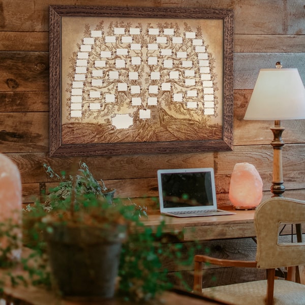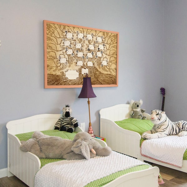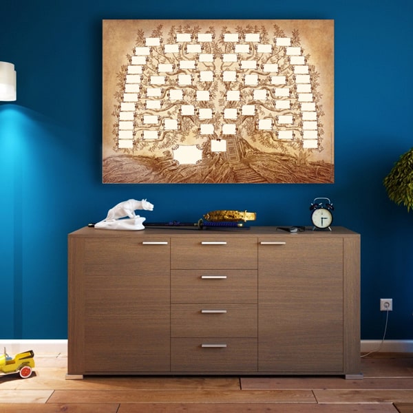 - Un tableau représentant l’arbre généalogique sur 5 générations vierge au format A2 (420 x 594 mm), impression papier Long Life 240 g/m² ;